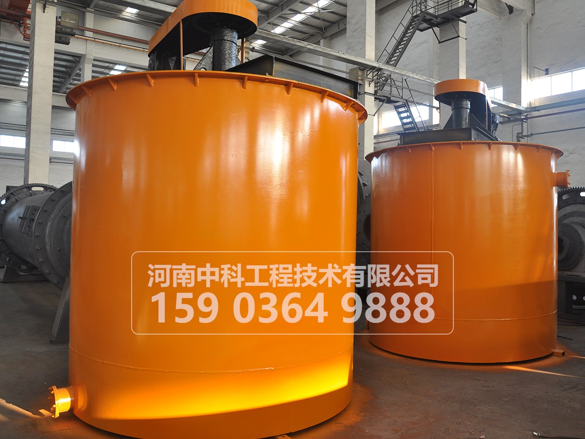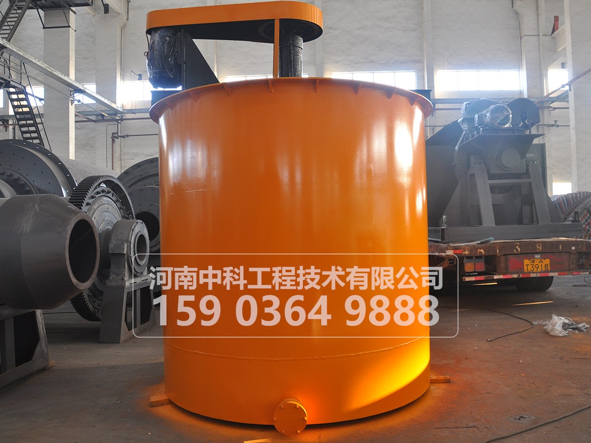 本机是由电动机三角带传动代动叶轮旋转,将药物和矿浆充分混合均匀,增加药剂作用反应时间强化药物反应质量的必要设备,本机适用于选矿业,也是必不可少的选矿设备也可用作各种化工业的槽糕搅拌。搅拌桶适用于各种金属矿,主要用于浮选前的搅拌,是药剂与矿浆充分混合,也可用于其他非金属矿物的搅拌。它使用于浓度不大于30%(按重量计算)固定成分的粒度小于1mm.它的形式是平底桶形辐射循环螺旋叶轮机械搅拌式
